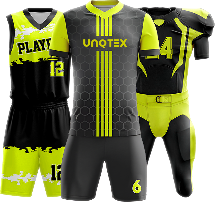 Upgrade your team’s style with UNQTEX Custom Sports Uniforms, featuring high-quality sublimation printing for unlimited design creativity. Each uniform is made with advanced Quick-Dri fabric that wicks away moisture, keeping players cool, dry, and performing at their peak. With UNQTEX, your athletes will look sharp, feel confident, and play their best—no matter the sport.